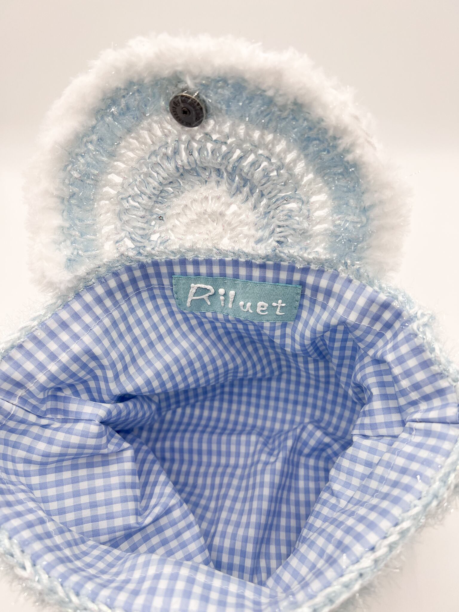 内側にはブルーのギンガムチェックの裏地が付いており、開けた瞬間も可愛いです。