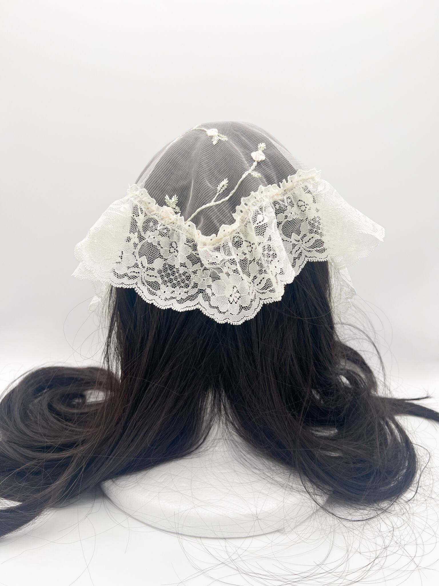 繊細な小花レースの乙女心くすぐるバブーシュカ。