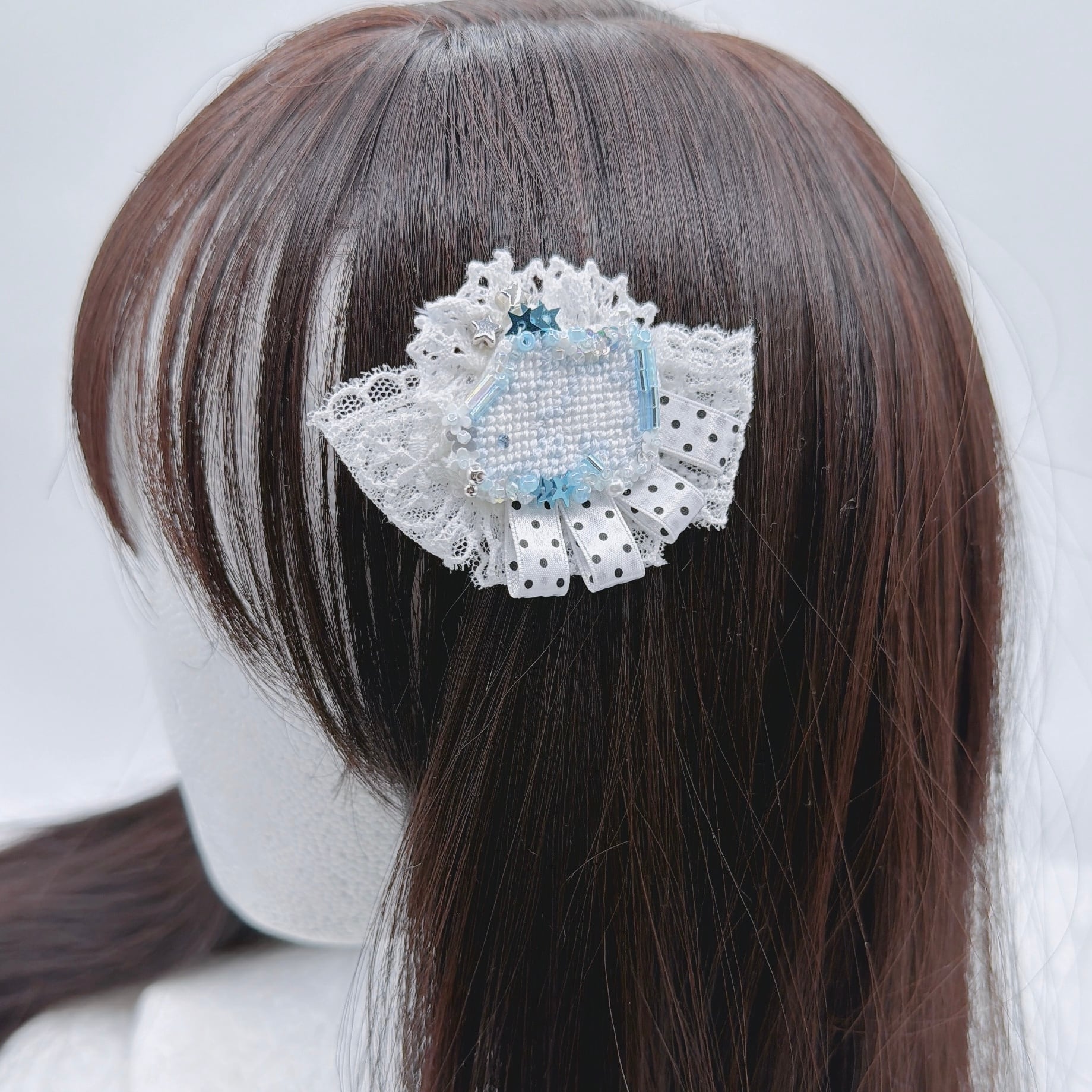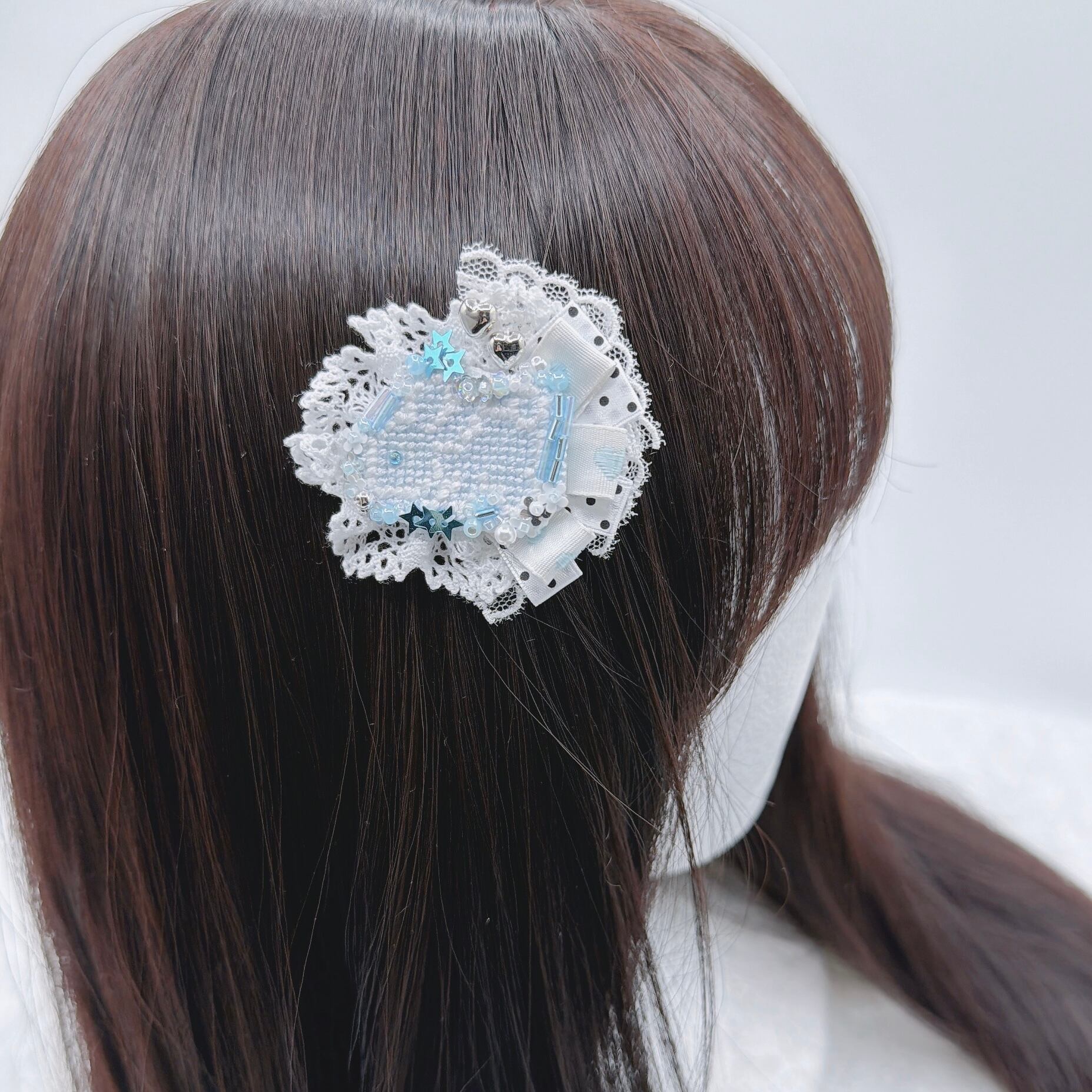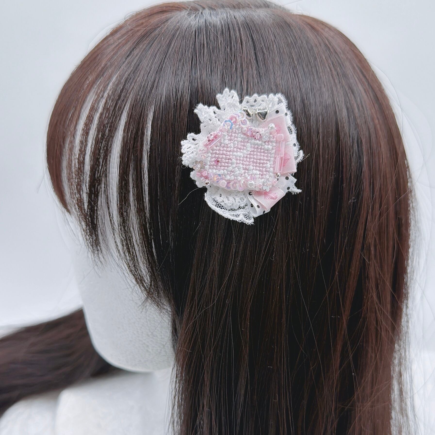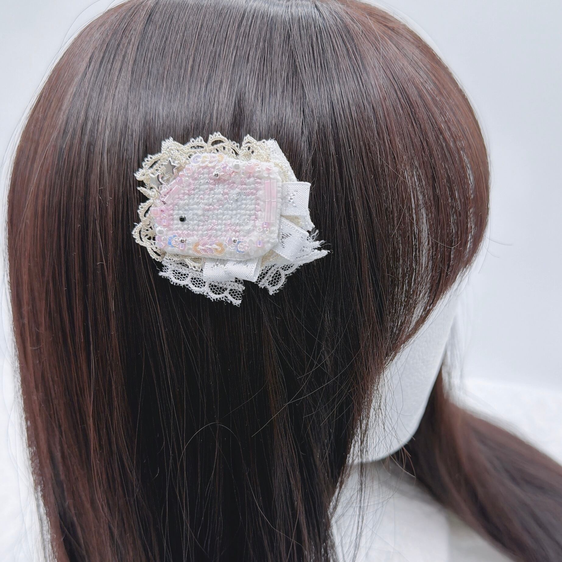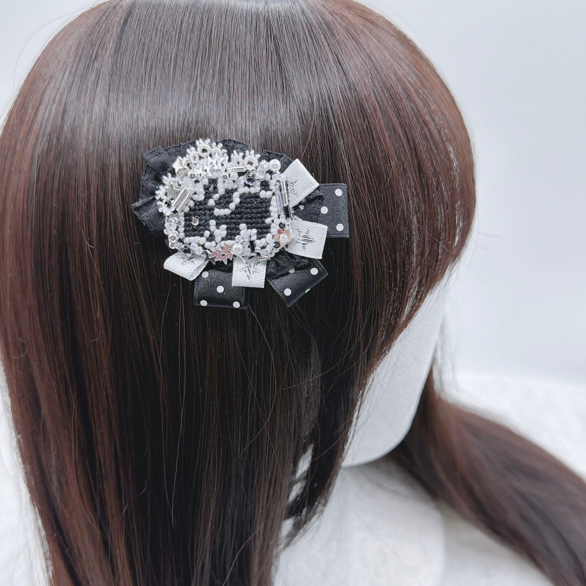 ロゼット風ドットししゅううさぎヘアピン