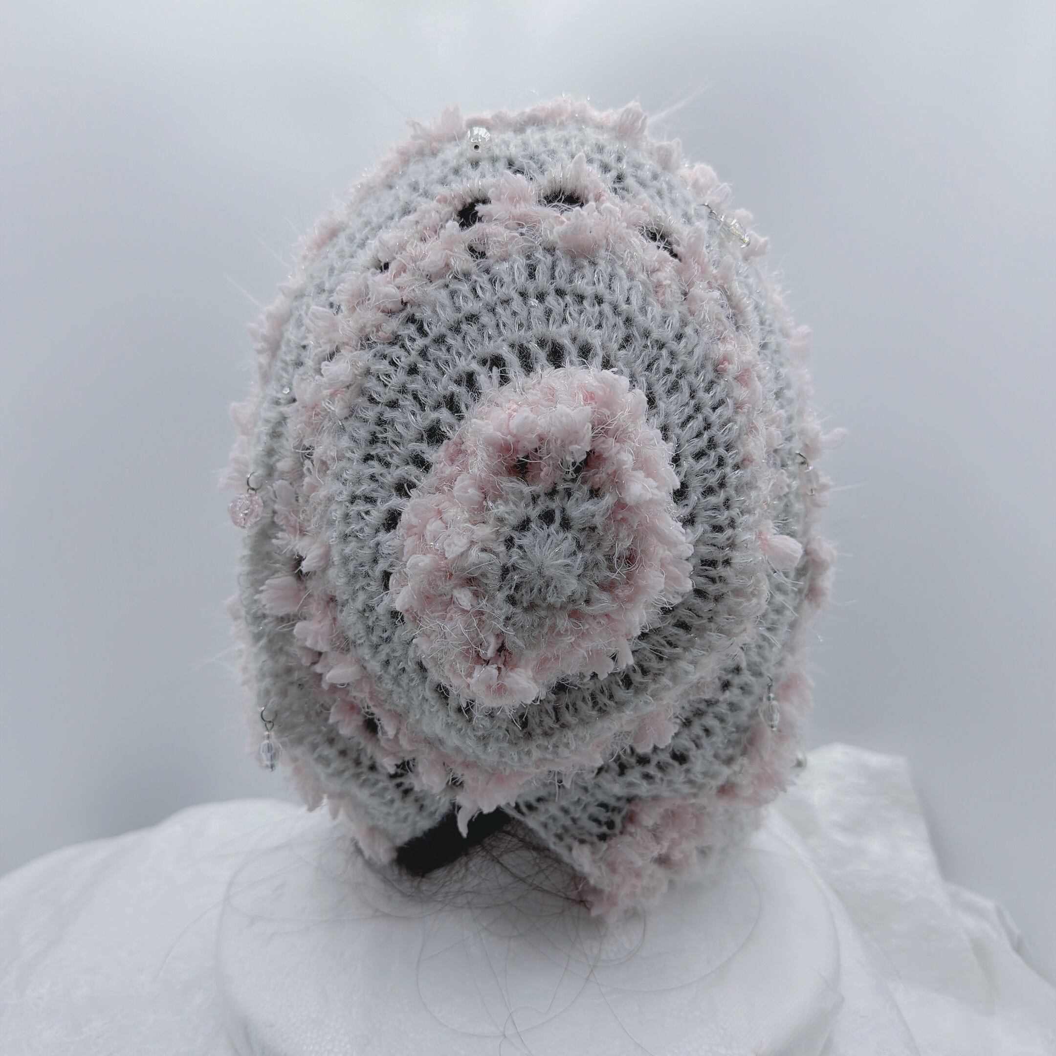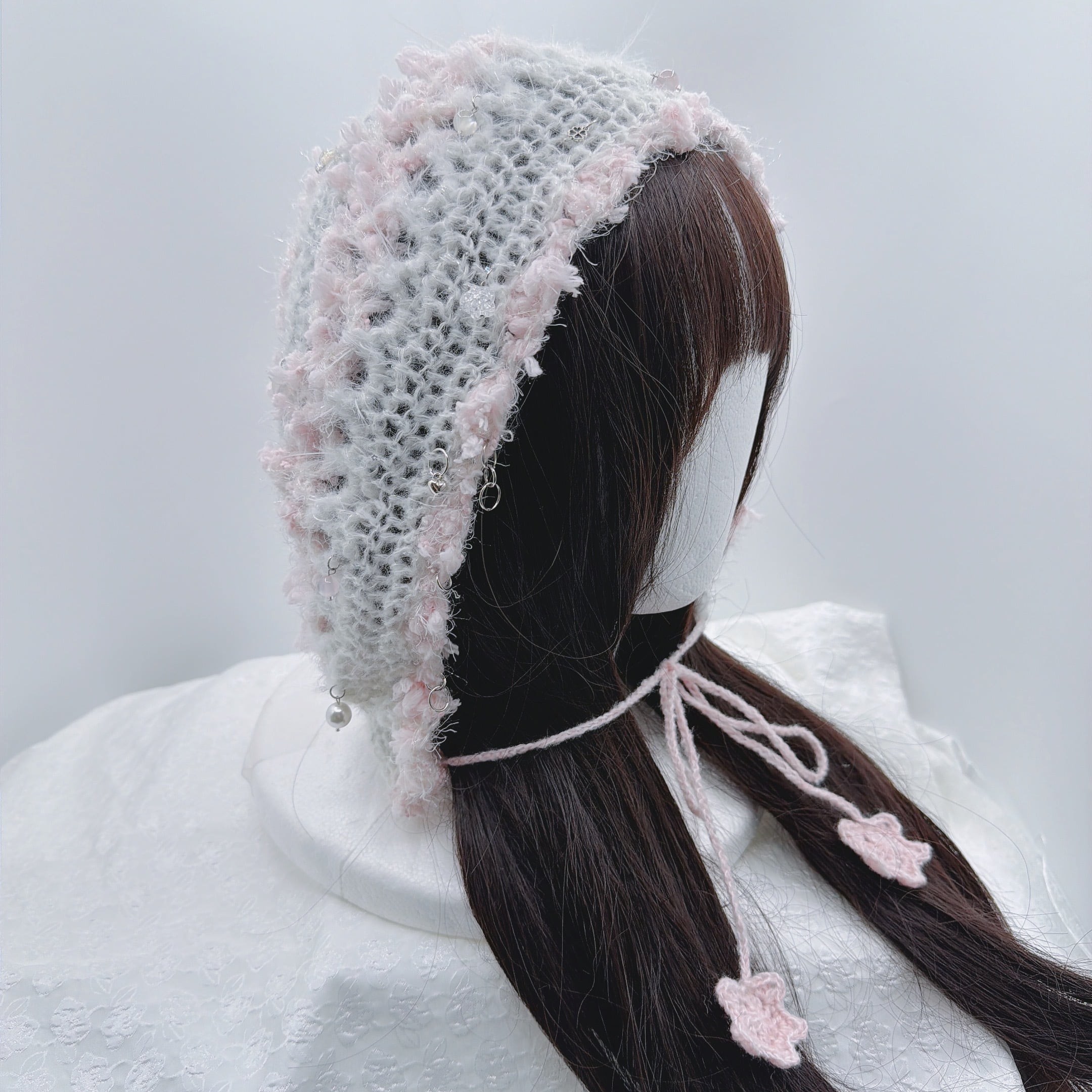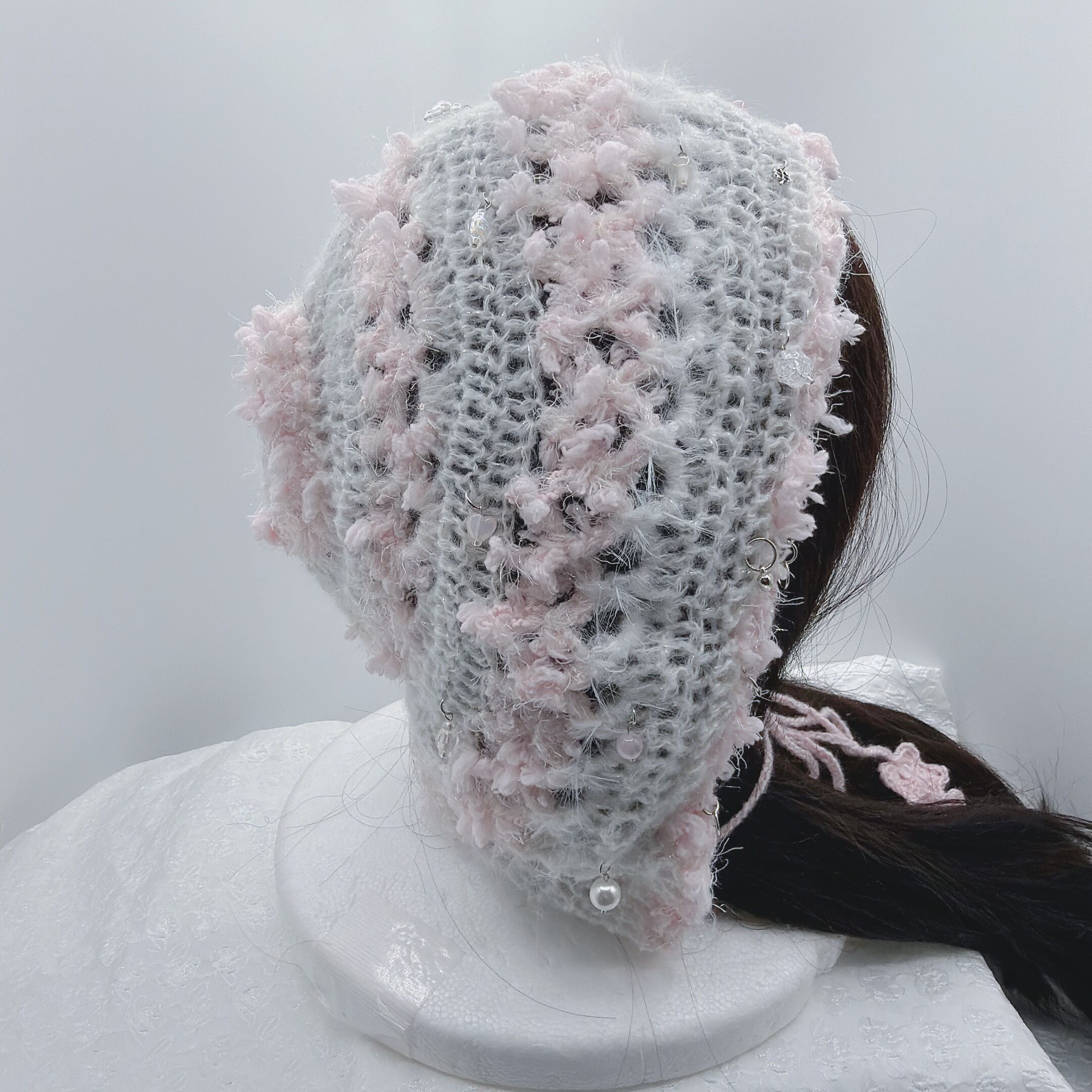 透かし編みバラクラバ(ホワイトピンク)