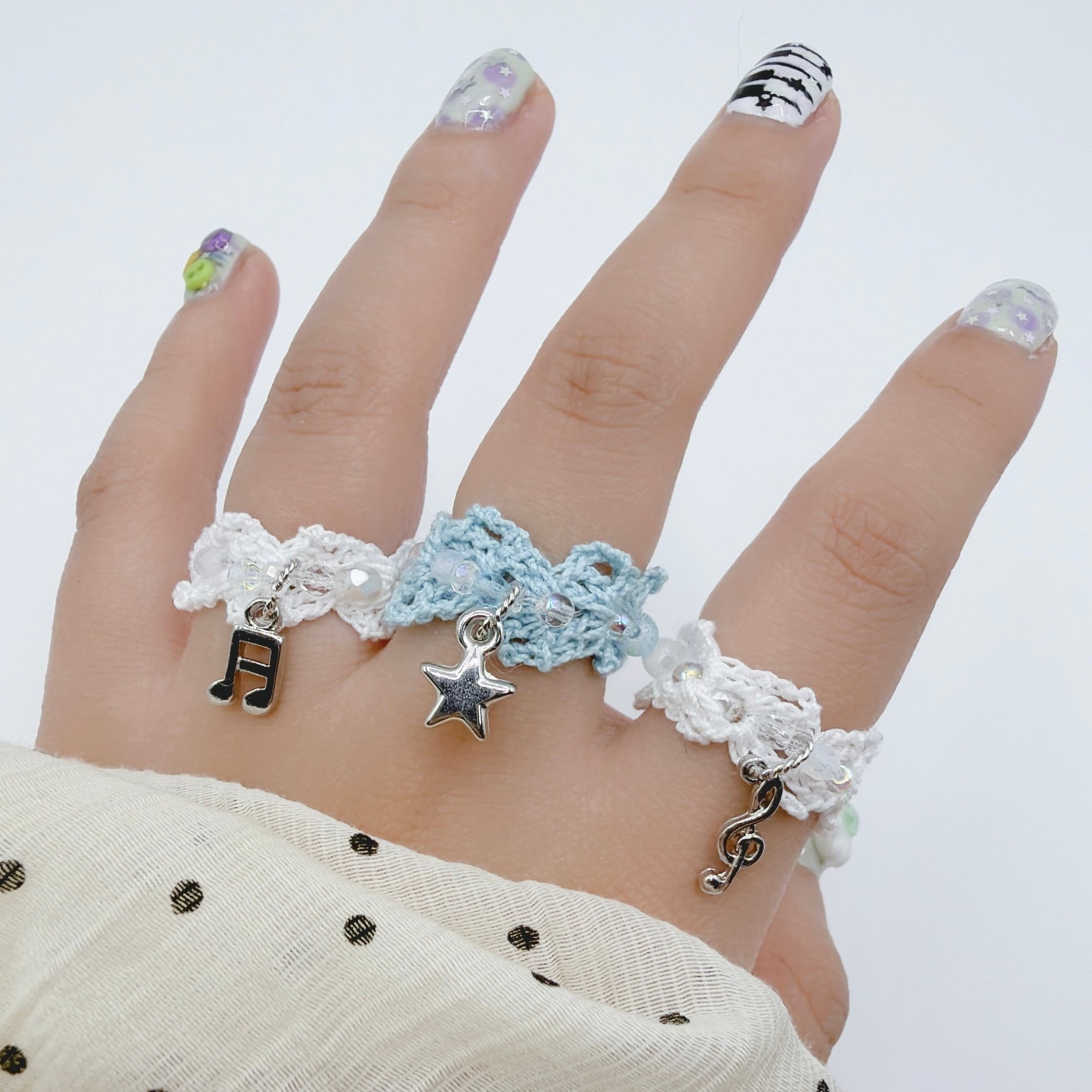 編みものとビーズを組み合わせた存在感のあるリングです!