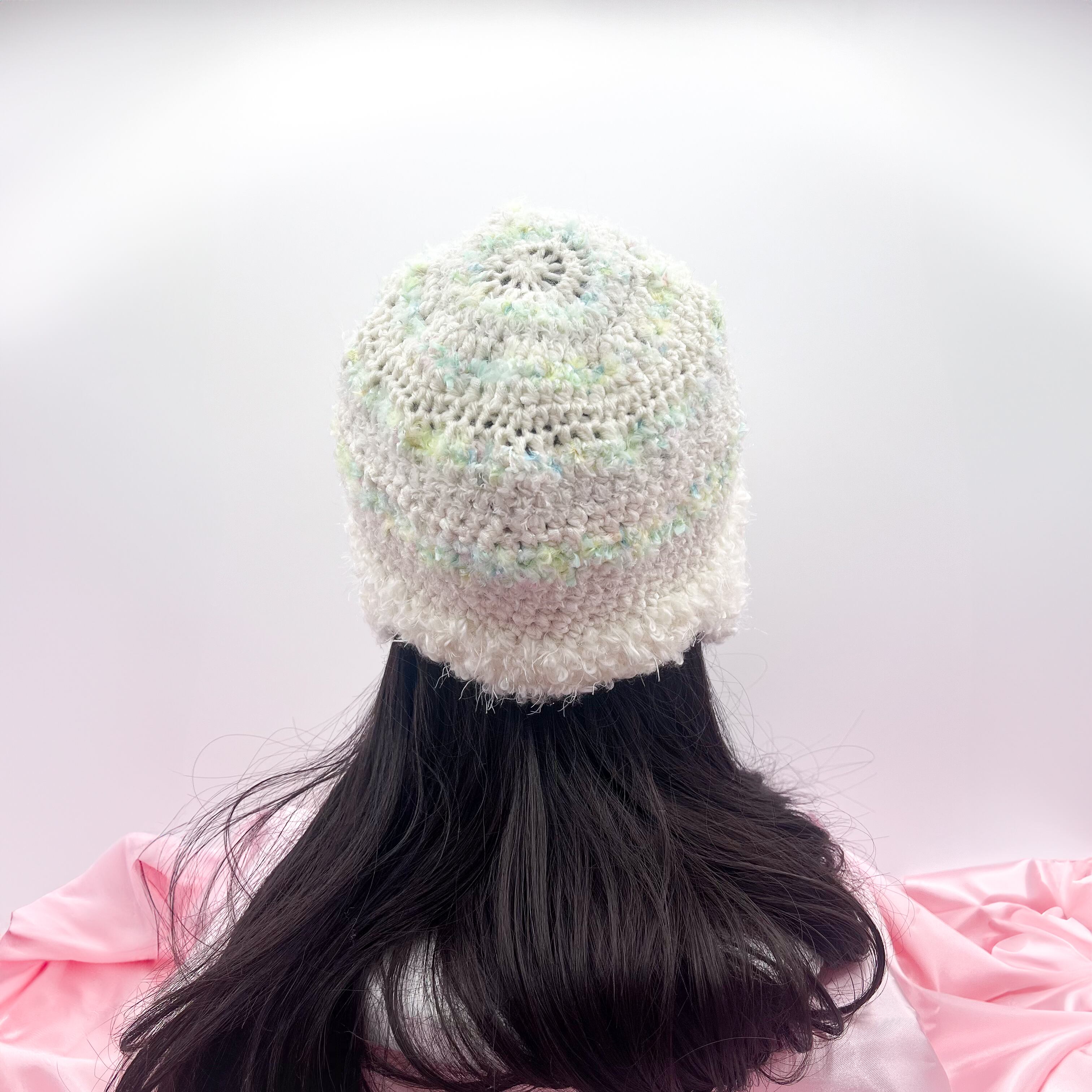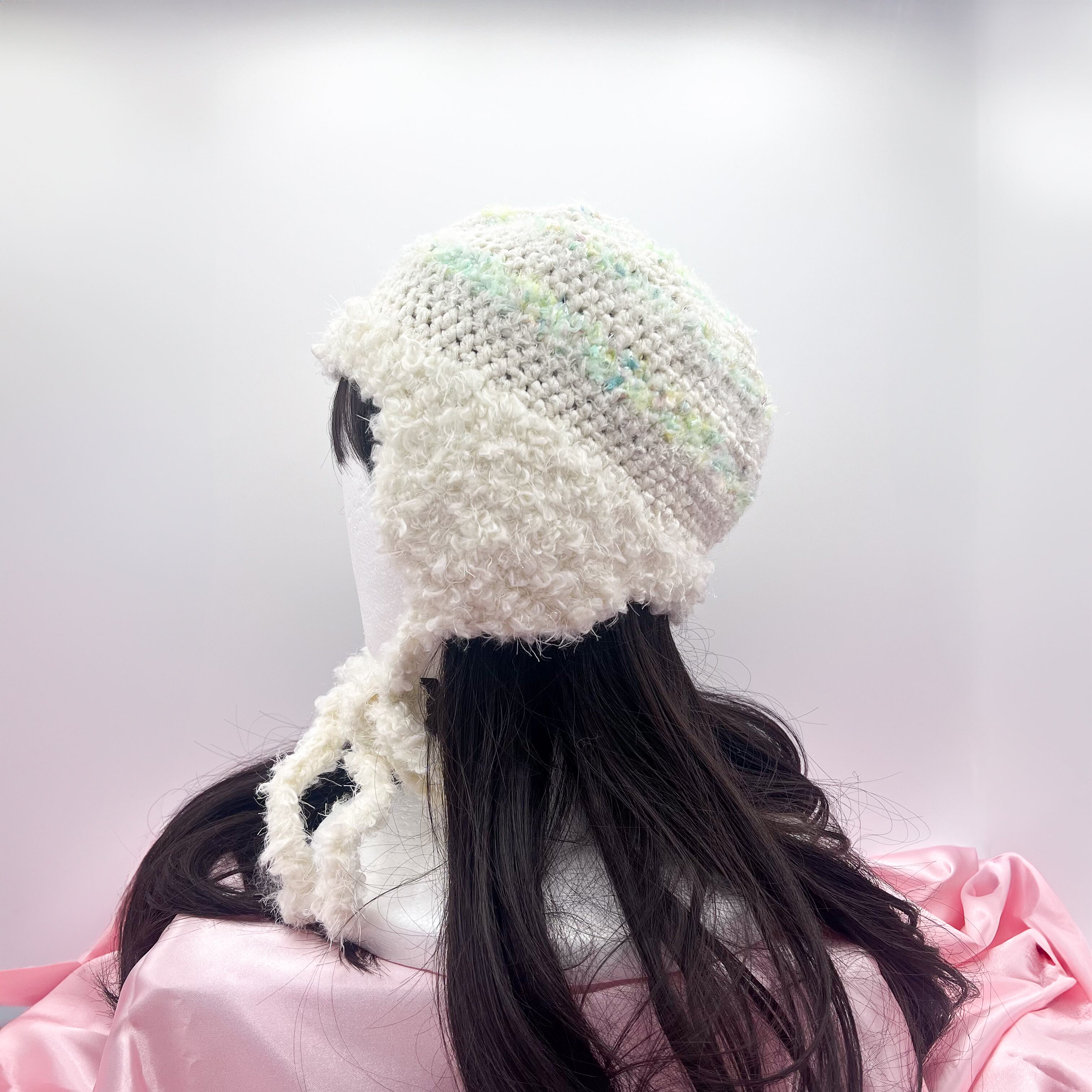 また耳当て部分はさらにふわふわ毛糸を使っている所も