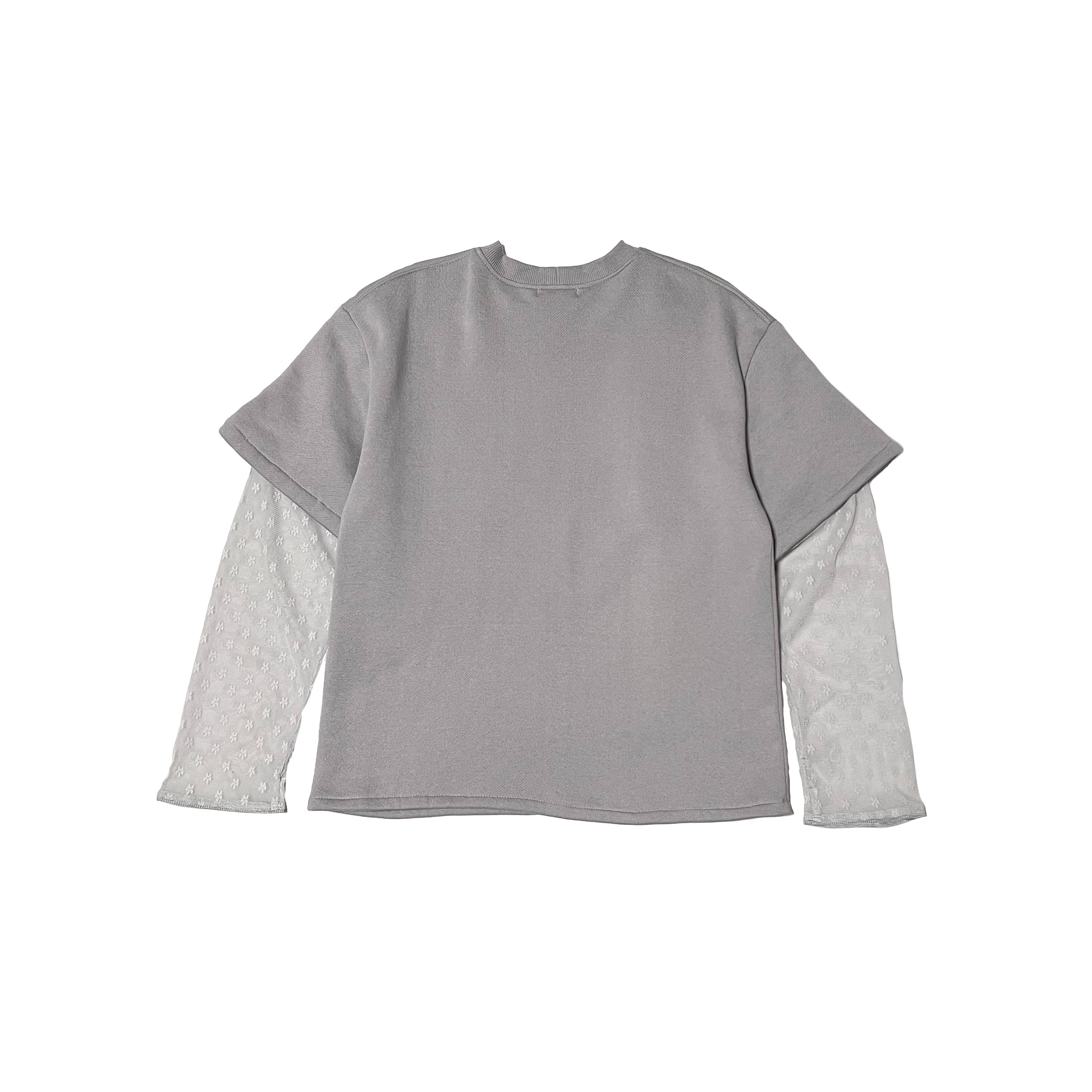 裏起毛の半袖ボディに袖が花柄のレースになっている