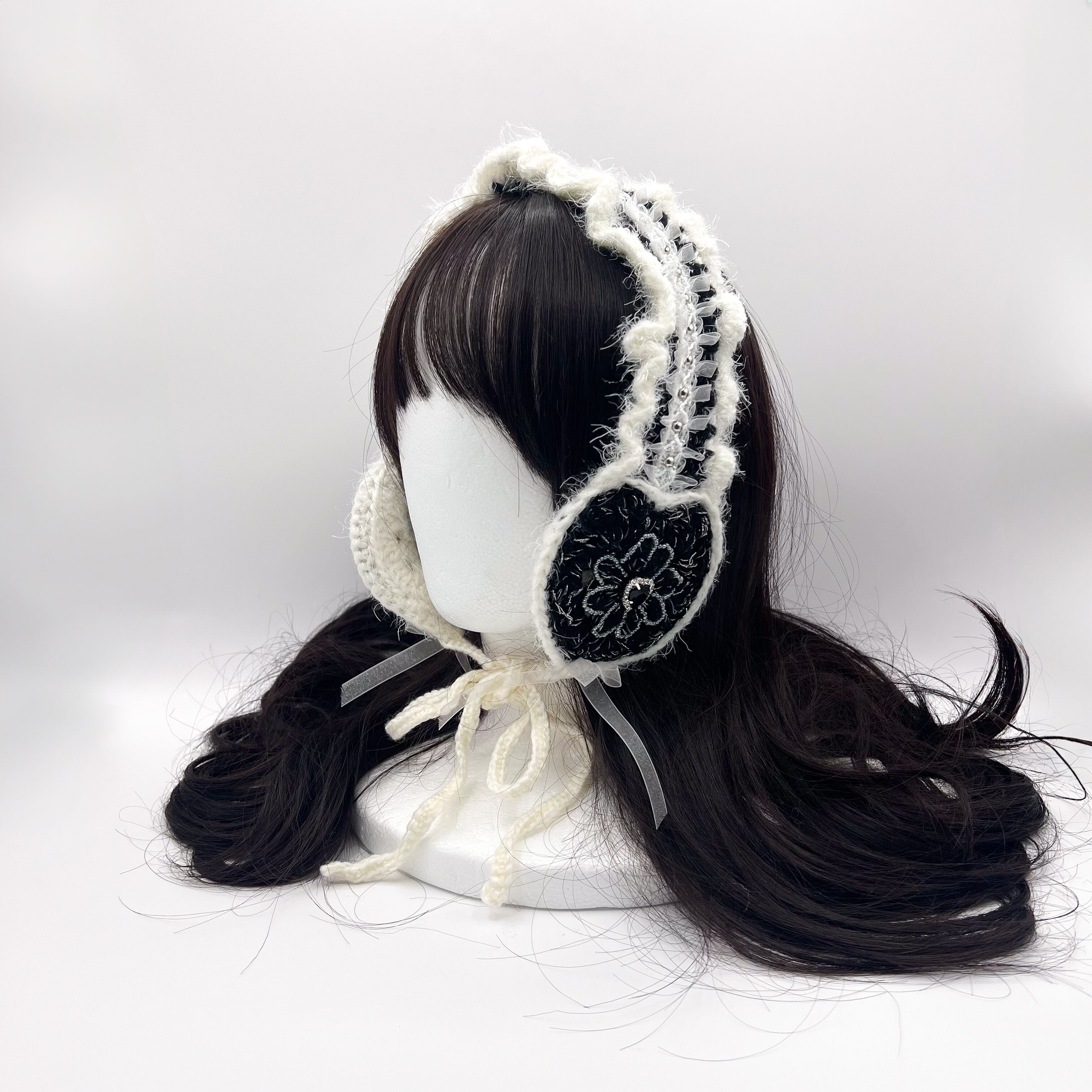 フラワーイヤーマフ(ホワイト、ブラック)